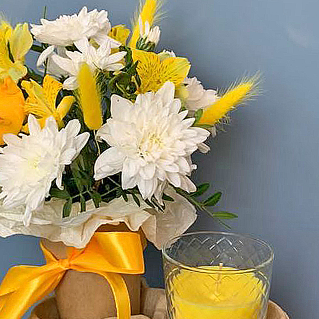 Сет "Солнечный". Набор стаканчики с цветами и аромасвечой арт. 70337