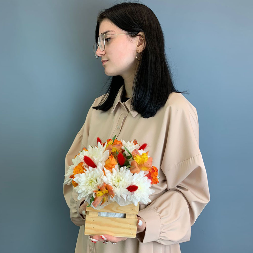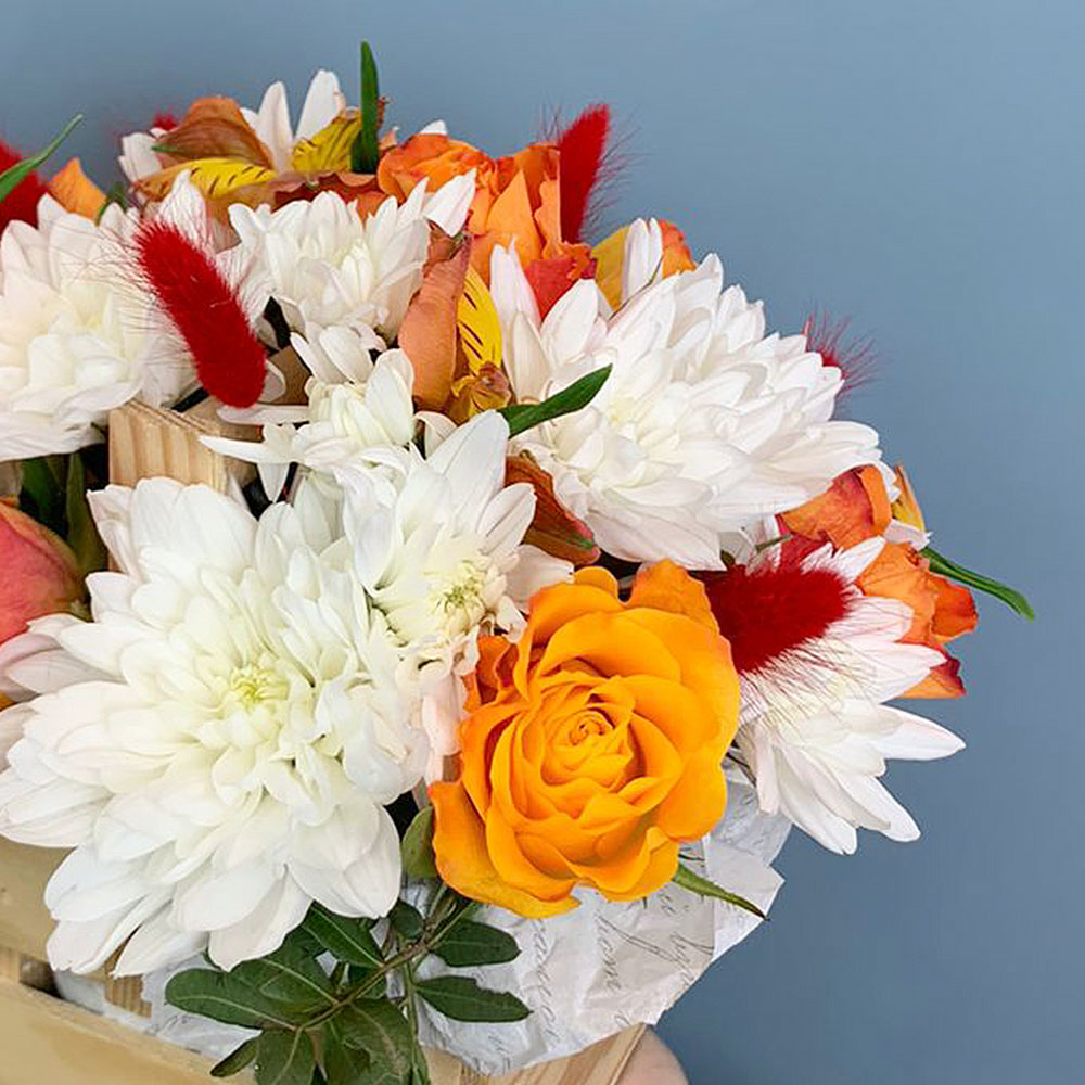 Чтобы букет радовал дольше, достаточно слегка увлажнять губку, сохраняя цветы свежими. Хризантемы и альстромерии славятся стойкостью, поэтому композиция будет сохранять красоту несколько дней. Закажите цветы в ящике с быстрой доставкой и порадуйте тех, кто для вас дорог.